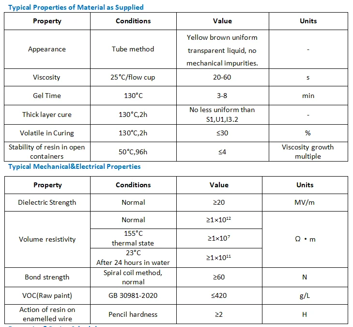 Product nameFast-curing solventless impregnated resinAppearanceYellow-brown uniform transparent liquid, no mechanical impurities.