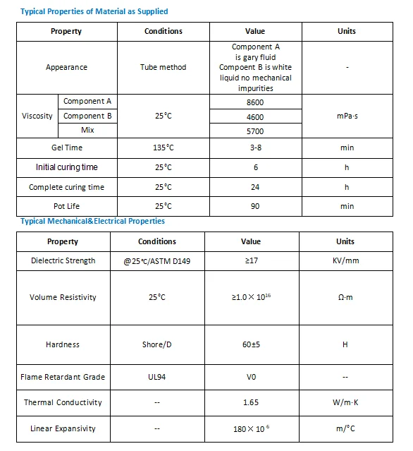 3 | Usage | Encapsulation of electronic components and waterproof, dustproof, and leakage-proof. Such as electronic and electrical modules, motors, transformers, power supply modules, rectifier circuits, etc. |