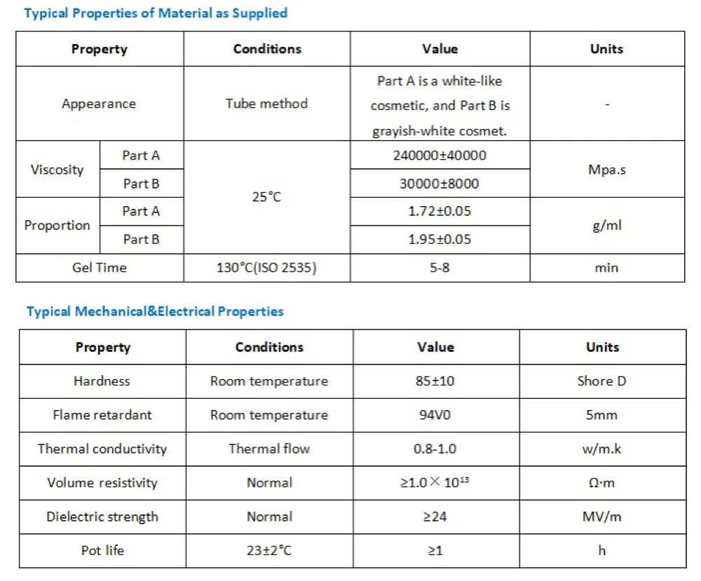 3 | Usage | It is suitable for potting and molding of motor stator coils, transformers, electrical control units, etc., such as for potting transformers, motor stators, and electronic components. |